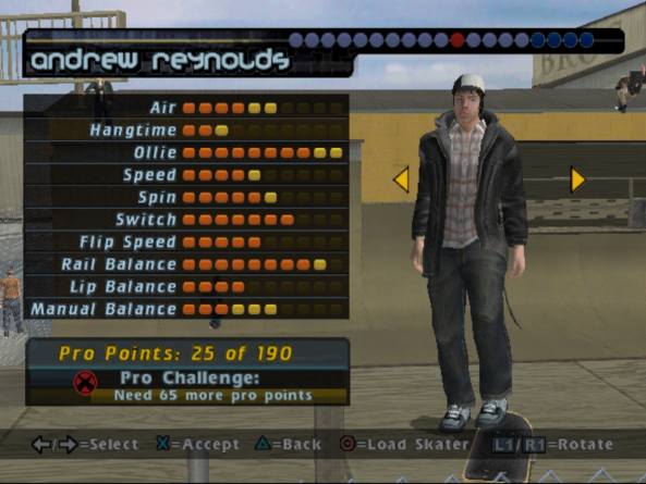 O upgrade de status é bem sútil; a maioria dos jogadores sequer vai perceber a diferença entre a altura dos ollies ou o equilíbrio nos corrimãos. No entanto, jogadores mais experientes, com um olho para as nuances mais técnicas do gameplay, certamente gostarão de jogar com um skatista superpoderoso com todos os status maximizados, podendo dar double flips ou até mesmo manobras especiais antes de tocar o chão.