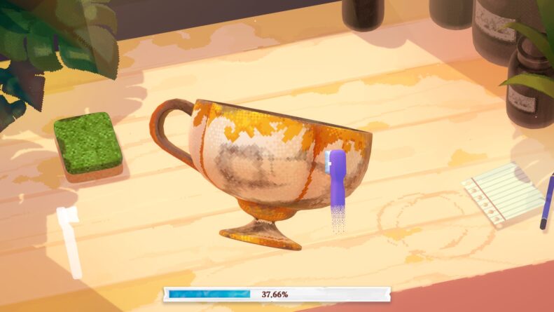 Para uma experiência confortável, o jogo traz elementos de “ASMR virtual” através de áudio cuidadosamente elaborado que captura as características de cada ferramenta que você usa, além de um estilo de arte cativante que é expresso de forma única com texturas pixeladas.