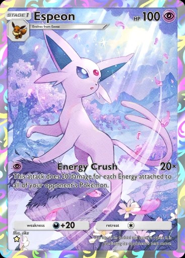 O tier 0 do momento, Espeon ex com Sylveon ex dá out speed na maioria dos decks do metagame de Pokémon TCG Pocket. Para piorar, o deck ainda usa Espeon baby que pune o oponente pela quantidade de energia acumulada em campo, algo em que somos muito bons em fazer. Portanto, é um deck que requer jogadas cautelosas.