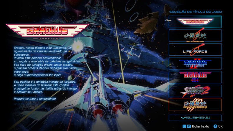 O pacote de GRADIUS ORIGINS cobre seis jogos clássicos da franquia, sendo eles: