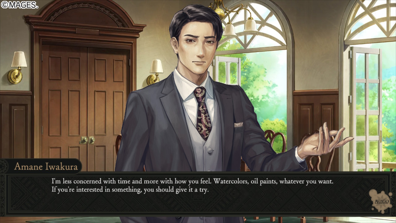 O jogo por exemplo, se passa quase que inteiramente dentro da mansão, o que por si só já limita bastante a quantidade de cenários presentes no jogo; o fato de que Iwakura Aria também só tem retratos para Ichiko, Aria, Amane e Sui (cozinheira da casa) enquanto não chegamos a ver o resto de praticamente nenhum personagem além desses. Tudo isso acaba contribuindo para essa sensação de escopo reduzido, mas que ao mesmo tempo pode ser lido como um reflexo de que o jogo apresenta uma jornada mais intimista, que não vai desviar muito do foco da história que quer contar.