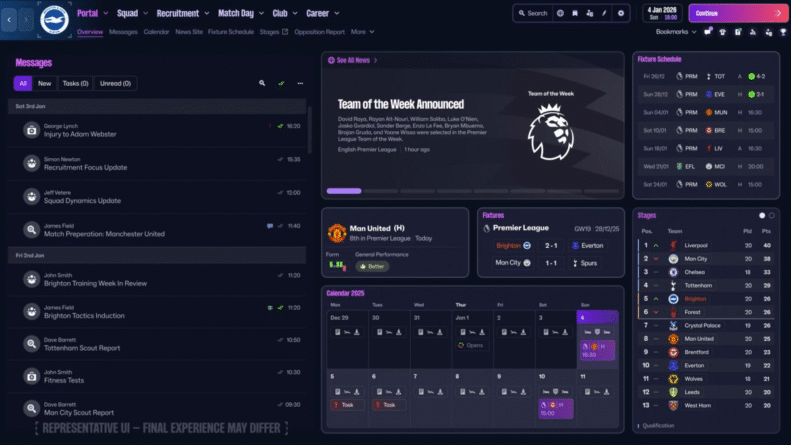 O menu principal agora será rebatizado de Portal e será altamente customizável pelo jogador. Agora, além de receber as principais notícias de seu interesse, será possível visualizar outros dados mais importantes, como datas de partidas, informações sobre atletas específicos, reports de times adversários e muito mais. Uma função de favoritar irá permitir um acesso mais rápido ao que lhe interessa, tornando a navegação em algo mais fácil e prazeroso.
