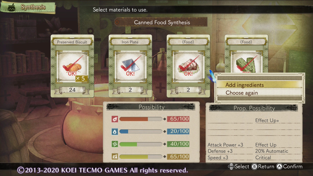 Inicialmente você pensará que nada disso importa, e estará parcialmente certo. Mas conforme o jogo avança, ele entende que você já aprendeu os fundamentos básicos da alquimia e está pronto para elevar de nível. Para completar determinados Assignments, será exigido certas especificações na composição de um item criado, portanto, é importante saber como funcionam os Valores de Efeito, os Efeitos em si, e as Propriedades, que são os aspectos principais os quais você deve se preocupar.