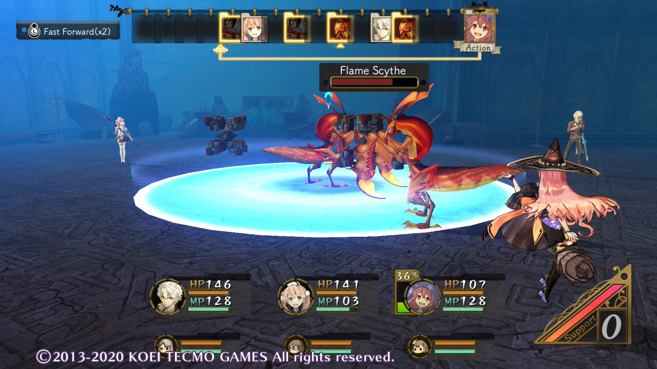 O combate de Atelier Escha & Logy era algo que eu nunca contestei. Ao passar pela trilogia Arland e depois pelo primeiro título da saga Dusk, nota-se que, para a sua época, Escha & Logy estava se esforçando em entregar algo que aproveitasse mais o seu elenco de personagens jogáveis que não se limitava aos que eram importantes para a história.