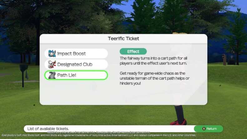 EVERYBODY’S GOLF HOT SHOTS funciona com um sistema de personagens que possuem seus próprios stats, além disso você pode escolher um pacote de tacos que variam de Potência e Precisão, tal como a dificuldade de execução que pode dar um quê de personalização nessa situação.