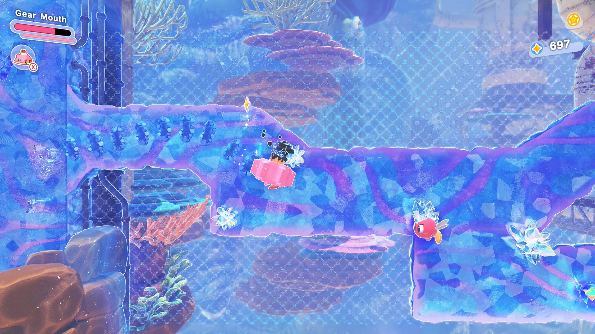 É um giro bem legal no que os níveis do jogo original faziam, e o efeito de “cristalização” presente nelas ajuda ainda mais a dar aquela diferenciada, além de ser um espetáculo visual por si só. Três novos Mouthful Modes também foram adicionados: Gear, Spring e Sign, cada um com suas próprias novas mecânicas e desafios para se superar e, claro, todos ótimos!