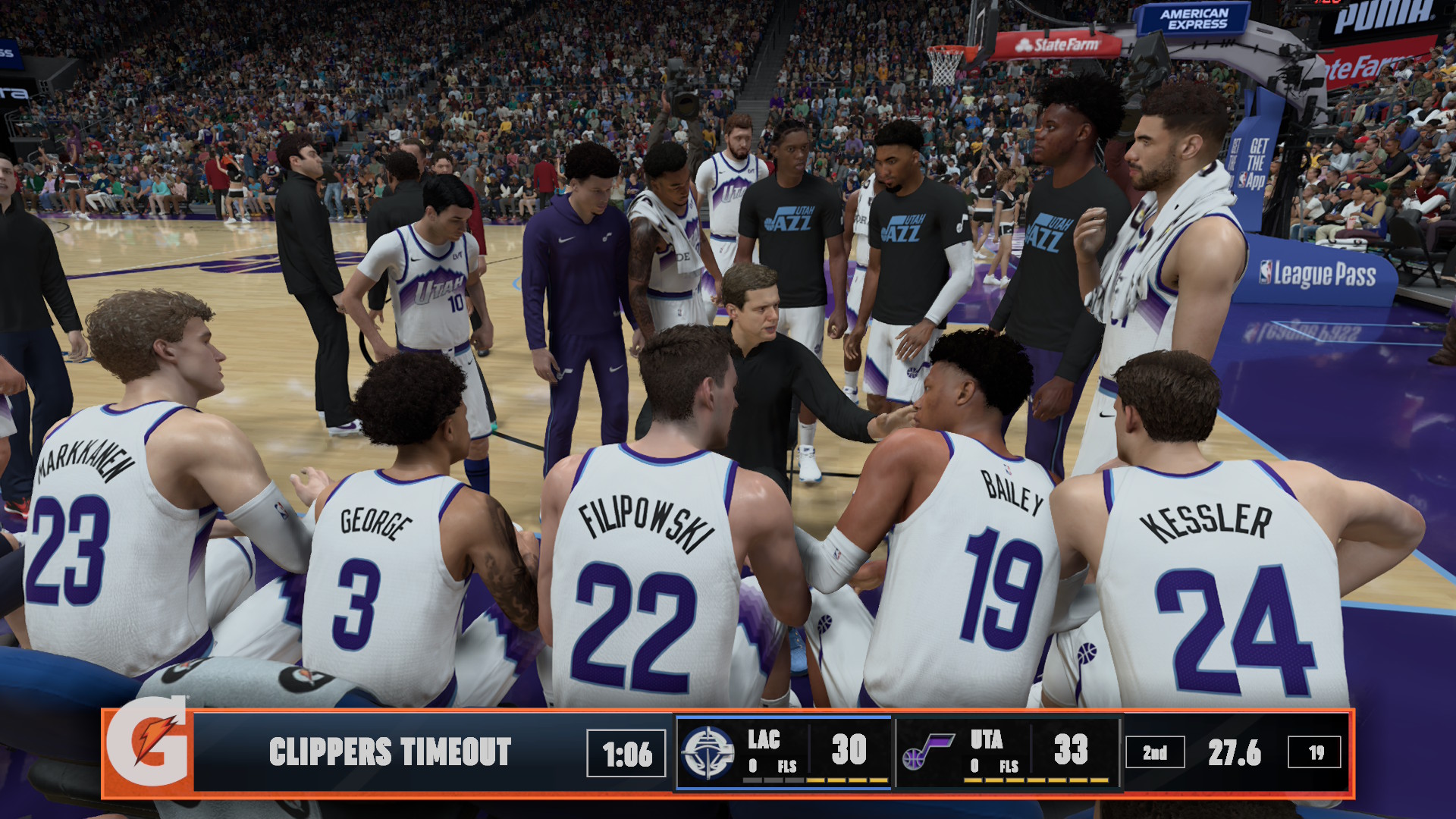 Tirando os visuais, o jogo ainda é uma representação fantástica da NBA no mundo virtual. Temos todo o show que ocorre durante uma partida da vida, incluindo as danças pelas líderes de torcida no intervalo, entrada dos jogadores em quadra um por um e até mesmo um pseudo programa esportivo analisando os jogadores em campo e os próximos adversários das equipes. Algo que me chamou muita atenção foi no modo carreira, onde os primeiros jogos têm uma vibe similar aos jogos da última geração, mas assim que entramos na NBA as coisas mudam bastante, incluindo até mesmo uma câmera exclusiva focada apenas no seu atleta.