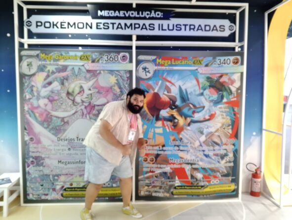 Como o maior fã de Pokémon do site, não poderia ser diferente: corri diretamente para o stand de Pokémon que esse ano está focado em Megaevoluções, para fazer a rima com o lançamento Legends Z-A. Vale lembrar que, essa é a primeira vez que a franquia ostenta um stand só seu, já que em situações anteriores, tudo relacionado a Pokémon ficava dentro da stand da Nintendo mesmo.