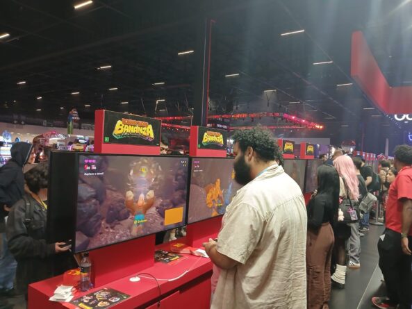 Em questão de jogos, tínhamos os destaques do momento, Donkey Kong Bananza e Mario Kart World que são os títulos de peso que abriram as porteiras do Nintendo Switch 2. Além disso, conseguimos testar a nova versão do Super Mario Galaxy 2, que finalmente recebeu o tratamento do seu irmão mais velho. Outros títulos já estabelecidos como Tears of the Kingdom e Pokémon Scarlet Violet estavam lá, além de Street Figther 6 do Nintendo Switch 2, e jogar os indies como Silksong e Hades II.