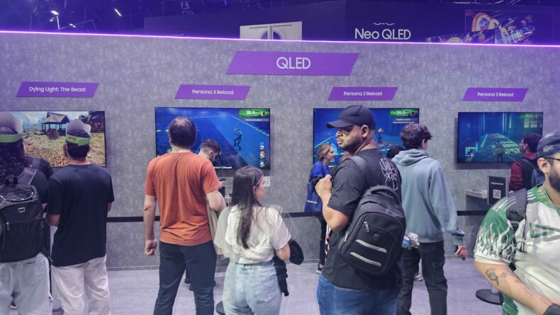 Pessoalmente, eu não consigo entender o porquê do jogo ser limitado a 30 quadros por segundo. Eu daria um pass se por acaso o motivo disso fosse a Unreal Engine 5, visto que tem uma chuva de jogos que não conseguem otimizar bem. Mas não, isso aqui é Unreal Engine 4. E mesmo com essa limitação dos quadros, ainda dá pra notar uns garranchos bem significativos no jogo. Inclusive, um fato curioso aconteceu. Como todos os estandes da Samsung tinham como objetivo mostrar a nova linha de TVs QLED da marca, parece que eles colocaram uma espécie de motion smoothing na imagem, onde a TV meio que usava uma IA para parecer que o jogo estava mais fluido do que ele realmente é.