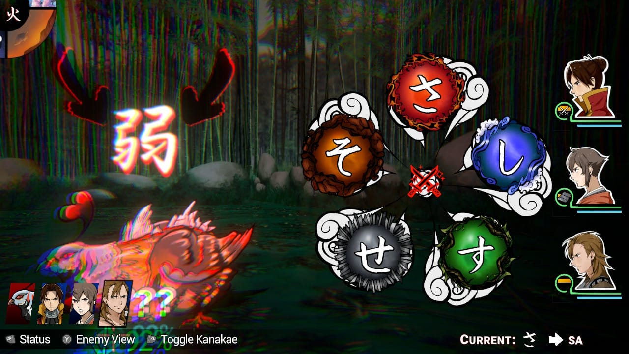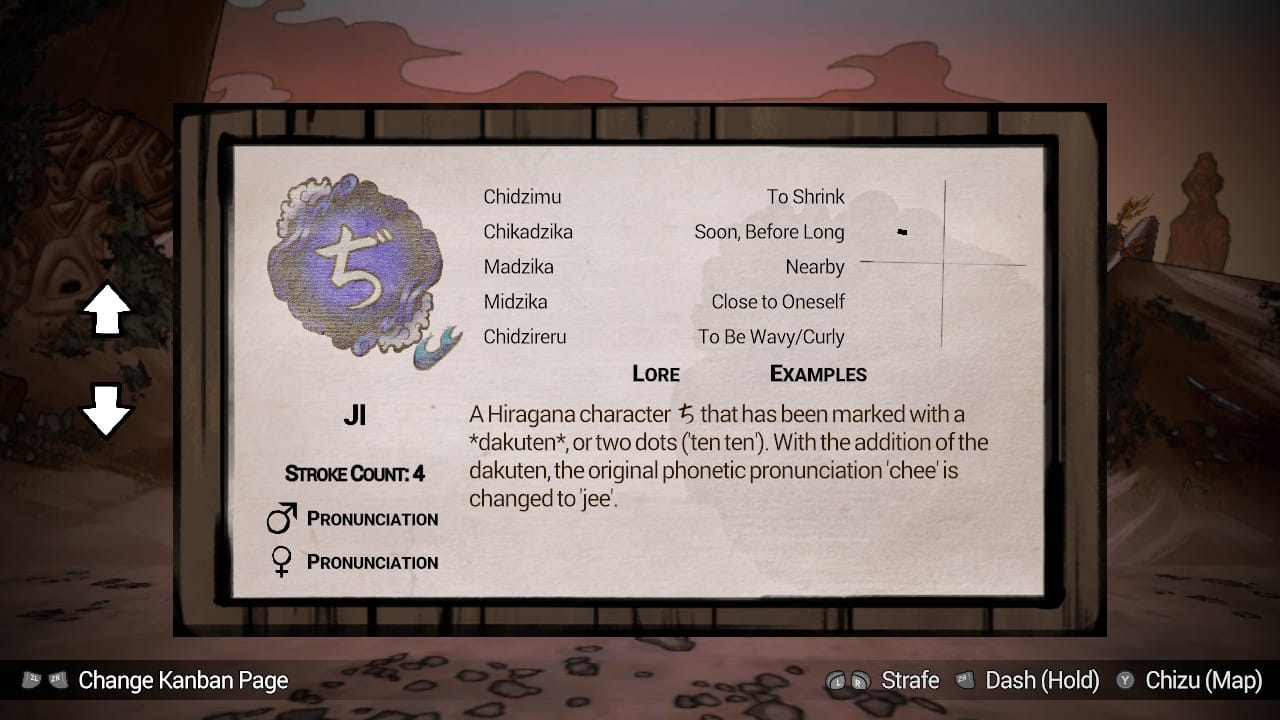 Por consequência das próprias mecânicas do jogo de escrever o nomes dos inimigos usando os kanas presentes no seu inventário, e equipados em seu personagem, acaba surgindo bastante procura dos caracteres corretos para que os inimigos recebam um dano levemente maior. Não define builds diferentes, apenas elementos e caracteres. É sempre satisfatório terminar de escrever o nome de um inimigo por completo, mas a recompensa de dano e de completar os nomes, assim como muitas das mecânicas do jogo, são entregues com bastante lerdeza.