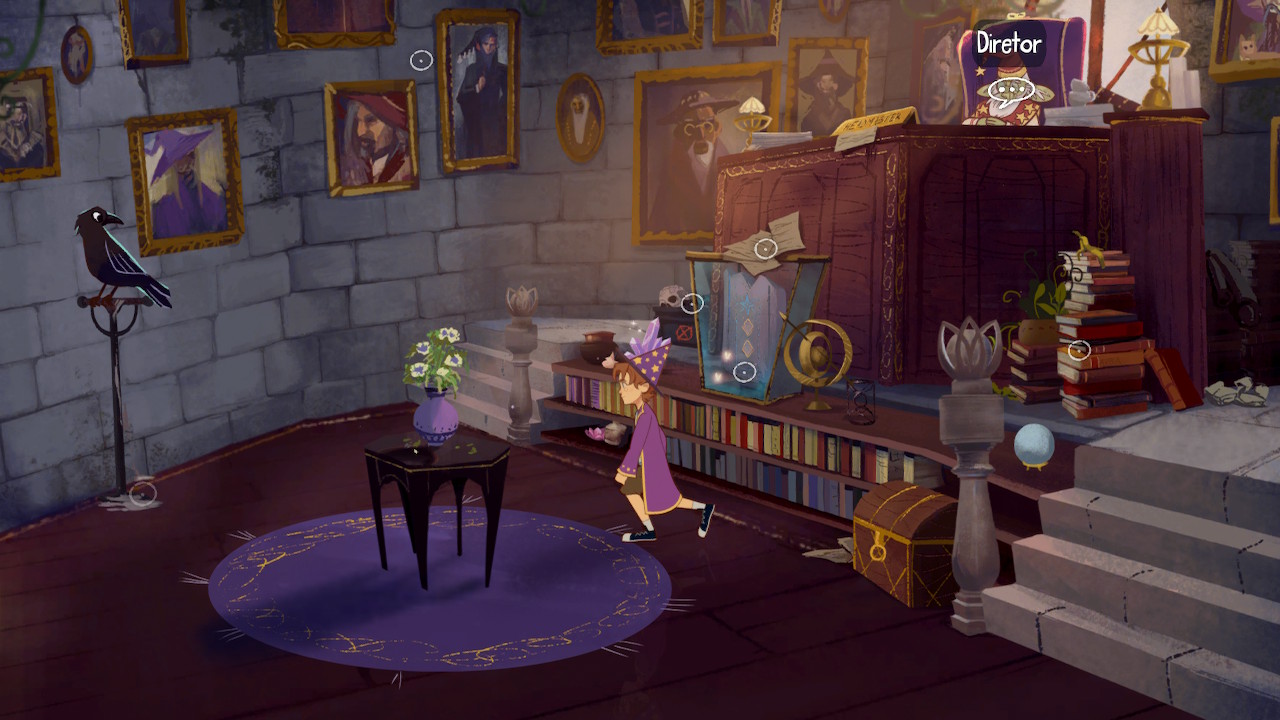 Em cada cenário, temos diversos interagíveis: sejam itens, pessoas, eventos e até mesmo o acesso ao inventário para utilizar itens. Tudo isso pode ser feito via mouse, touch screen, ou pelos botões. Mas no último caso, temos que ir um a um para chegar no que queremos, utilizando ou o analógico, ou L e R. Por incrível que pareça, eu preferi o modo dock.