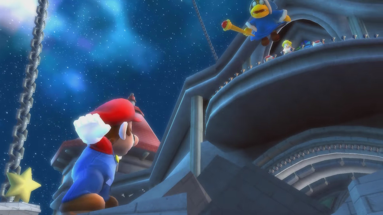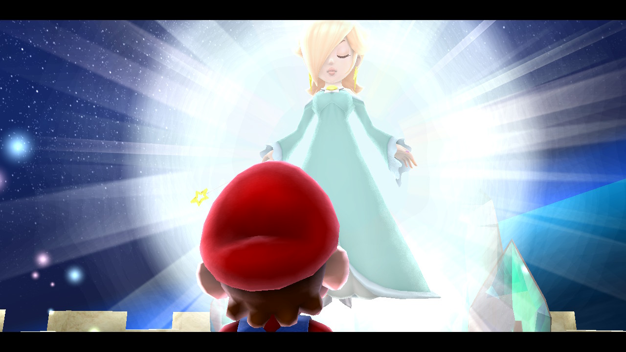 Com as remasterizações, eu percebi em não muito tempo: não tem a Rosalina! Isso é absurdo demais, pois acaba com metade da personalidade do jogo. Veja, no primeiro Super Mario Galaxy, resgatamos estrelas para restaurar a fonte de energia do Observatório da Rosalina, onde ela vive com suas Lumas em paz, protegendo o universo de possíveis perigos. A cada estrela que recuperamos, a nave ganha mais brilho, recupera novos setores, permite mais atividades. Você sente uma missão extra ali, que é bonita e divertida.