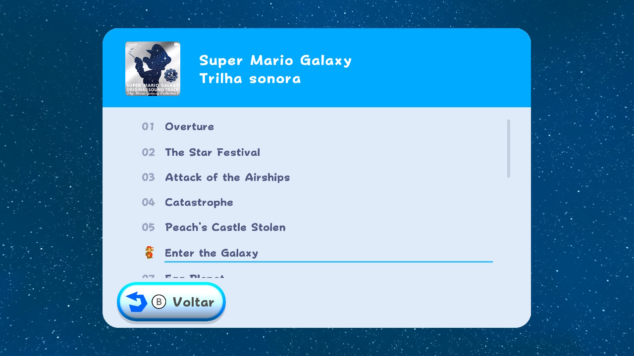 Ganhamos também o modo Orquestra! Super Mario Galaxy sempre foi muito muito elogiado pela sua trilha sonora, que realmente é uma obra de arte emocionante, concreta, e bem amarrada. No menu inicial de cada título, podemos apertar o botão “–” e deixar tocando até como música de fundo de uma recepção (risos).