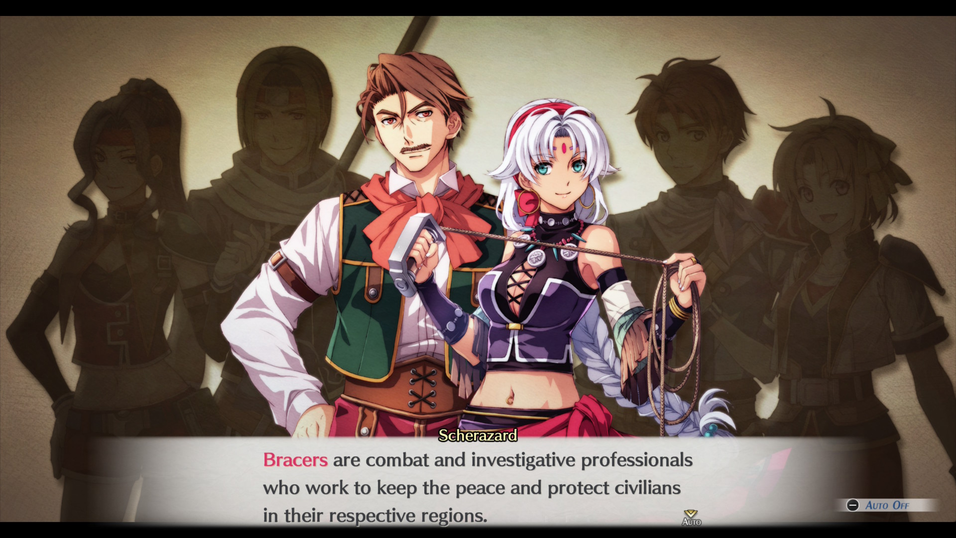 É claro, essa união de mecânicas e narrativa está presente em toda a série, mas a forma como ela ocorre em Trails in the Sky 1st Chapter é a mais natural de todas. Verdade seja dita, a adição dos Bracers foi algo que traz prós e contras para a história deste jogo e da série geral. Vale mencionar que todos os títulos subsequentes estrelando outros protagonistas (a duologia Zero/AO, a quadrilogia Cold Steel e os dois títulos Daybreaks) sempre deram uma desculpa que tentasse justificar por que personagens que têm outros tipos de trabalho (policiais e estudantes) estão fazendo coisas que não são esperadas deles. Isso está diretamente ligado ao fato de que a Falcom inventou uma maneira excelente de justificar as sidequests logo no primeiro título da franquia.