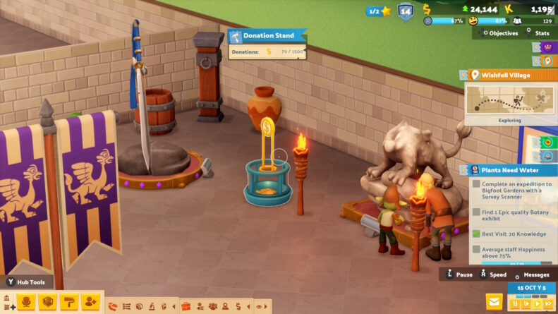 Entretanto, decorar museus a partir de itens aleatórios não constitui um jogo como Tycoon. A maior profundidade do jogo reside, no fim, nos elementos de gerenciamento de fato, e aqui temos vários para nos atentar.