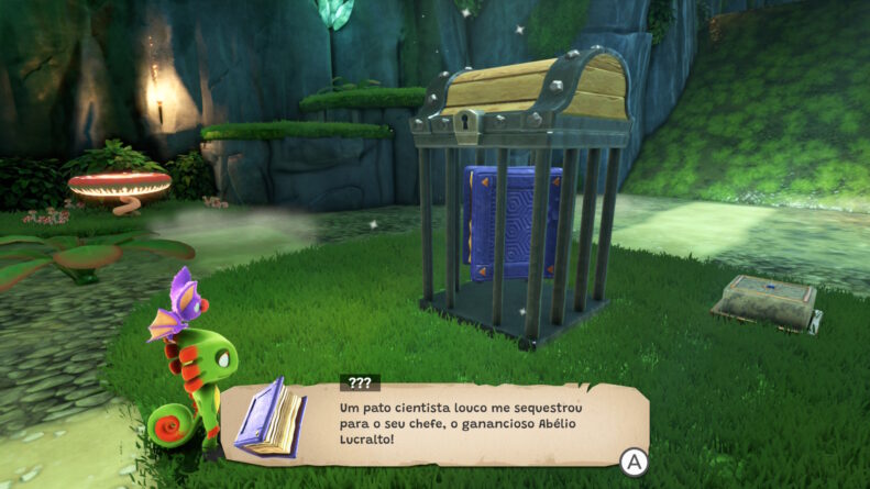 Em Yooka-Replaylee, nós acompanhamos a dupla… Yooka e Laylee (chocante, eu sei): um camaleão e uma morcega, respectivamente. Um certo dia, ambos navegavam pelo mar com seu navio em busca de tesouro, mas acabam se deparando com uma tempestade que os leva até uma misteriosa ilha: lá, eles encontram um livro falante chamado… “O Livro”. O Livro explica que ele é um ser mágico, e que tudo que é escrito nele se transforma em realidade. Não demora muito até que o vilão do jogo, Abélio Lucralto, um CEO tirano de uma empresa multimilionária, faça uma tentativa de sequestro ao livro que, num ato de desespero, espalha suas folhas ao redor do mundo.