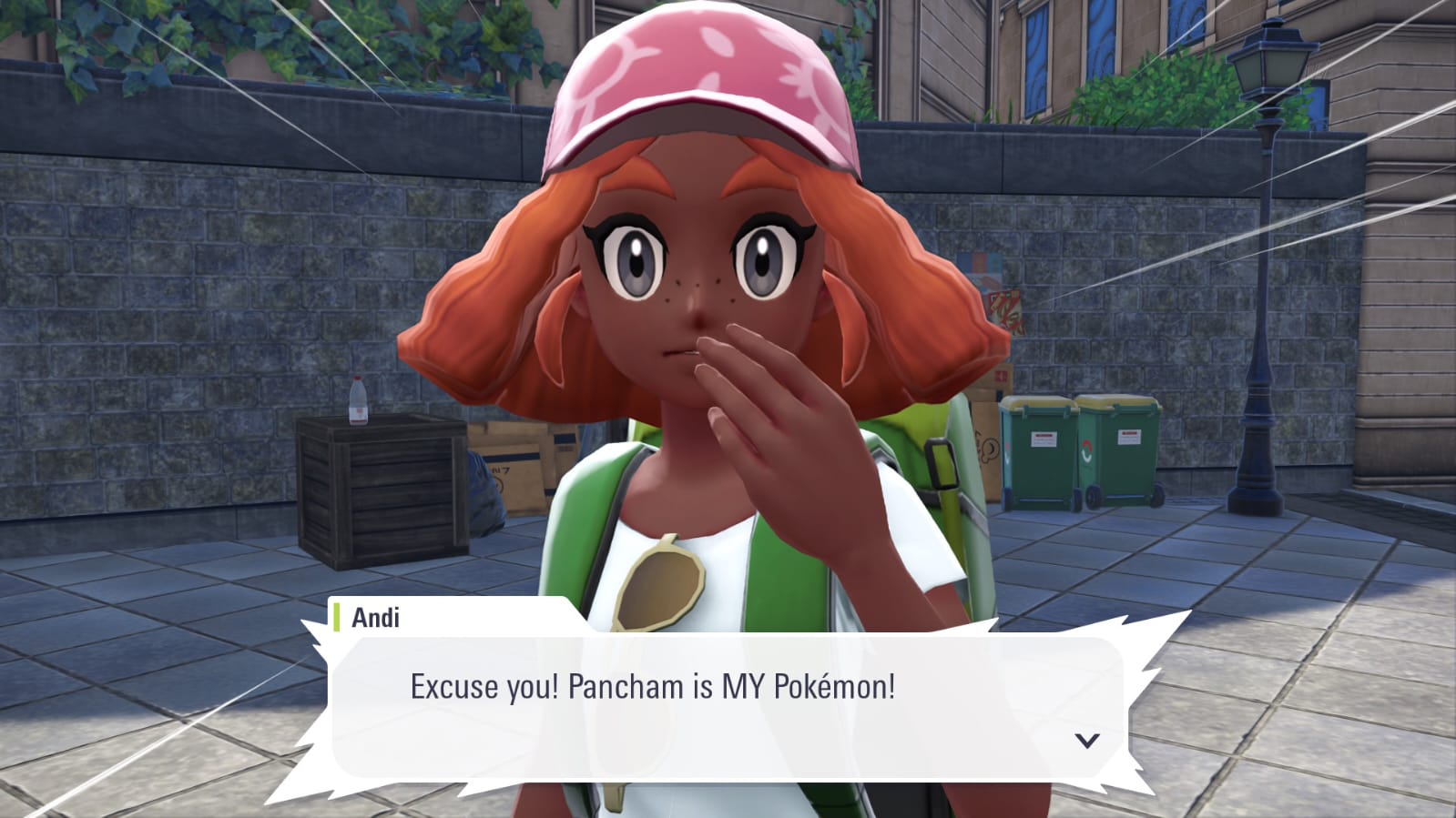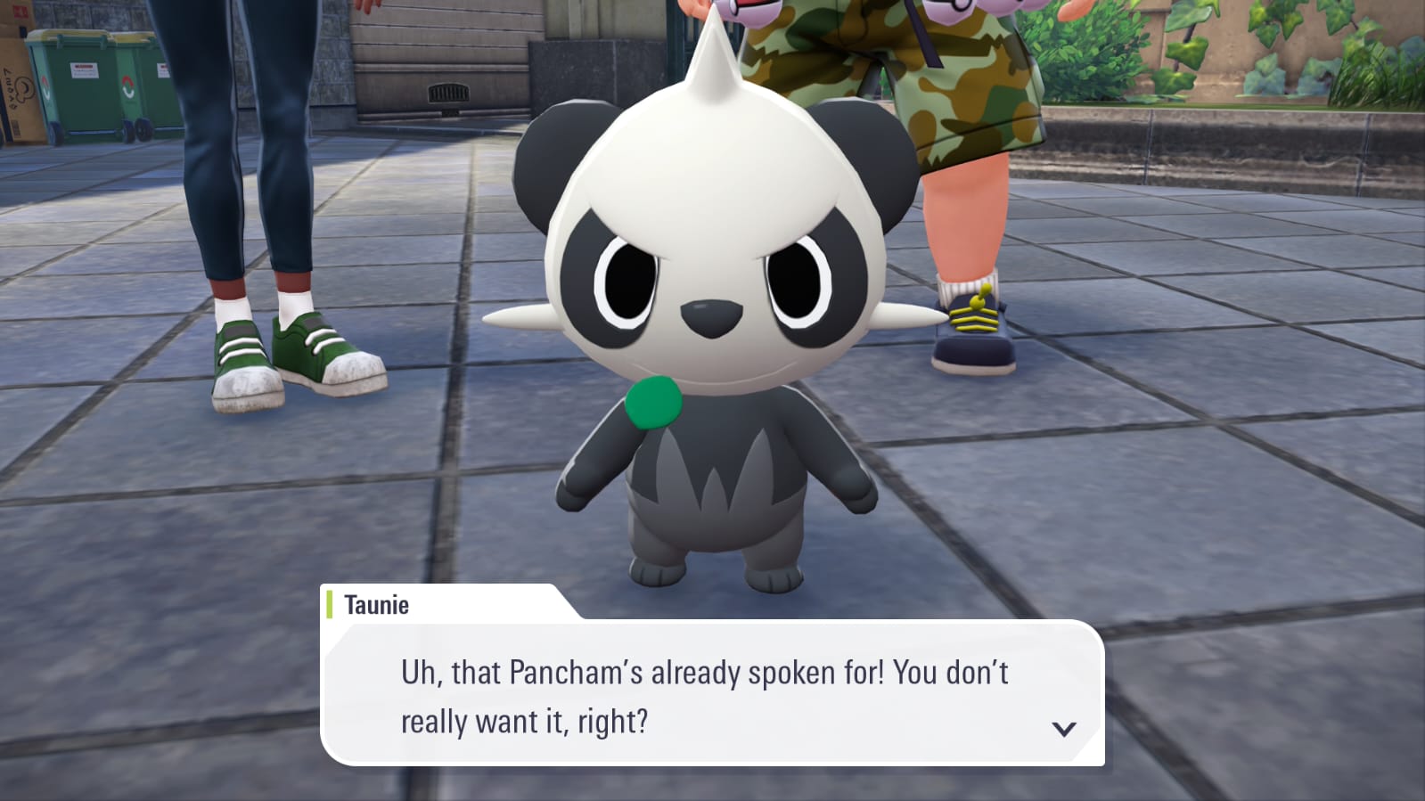 Ao conversar com o pequeno panda, até mesmo uma opção de confirmação aparecerá. Mas não é como se fosse realmente possível abrir mão do trio de starters para pegá-lo para você, afinal, este Pancham já possui um treinador!