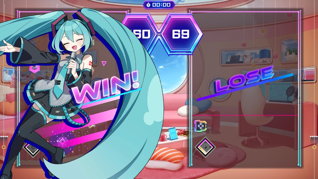 Também vale destacar que os ambientes e personagens são bem representativos de culturas otaku variadas, trazendo um charme bem peculiar. Não à toa se trata de um jogo no qual Hatsune Miku, Reimu Hakurei (Touhou) e VTubers da hololive como Mori Calliope são jogáveis.