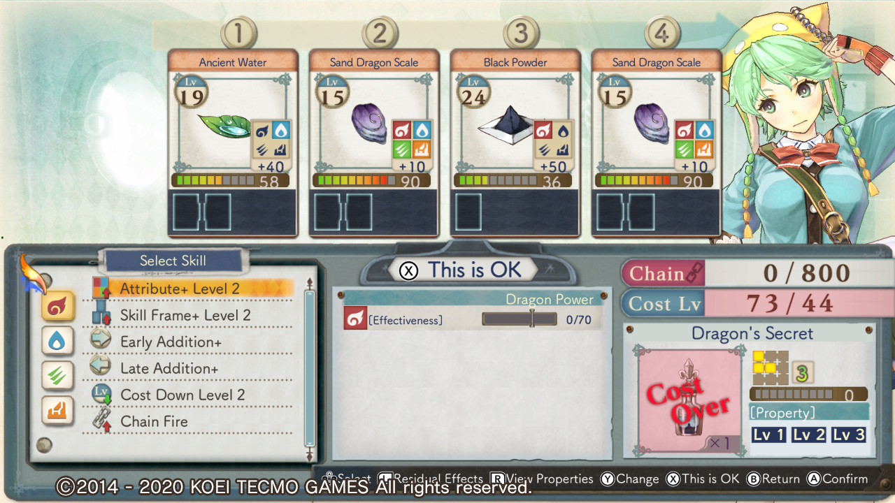 Estranhezas à parte, o Synthesis em Atelier Shallie se mostra mais refinado e metódico do que seus antecessores. A interface parece amigável nas primeiras etapas, mas a colher de chá acaba aí. Distribuir as skills requer atenção e pespicácia por parte do jogador, mesmo que ele seja familiarizado com Atelier.