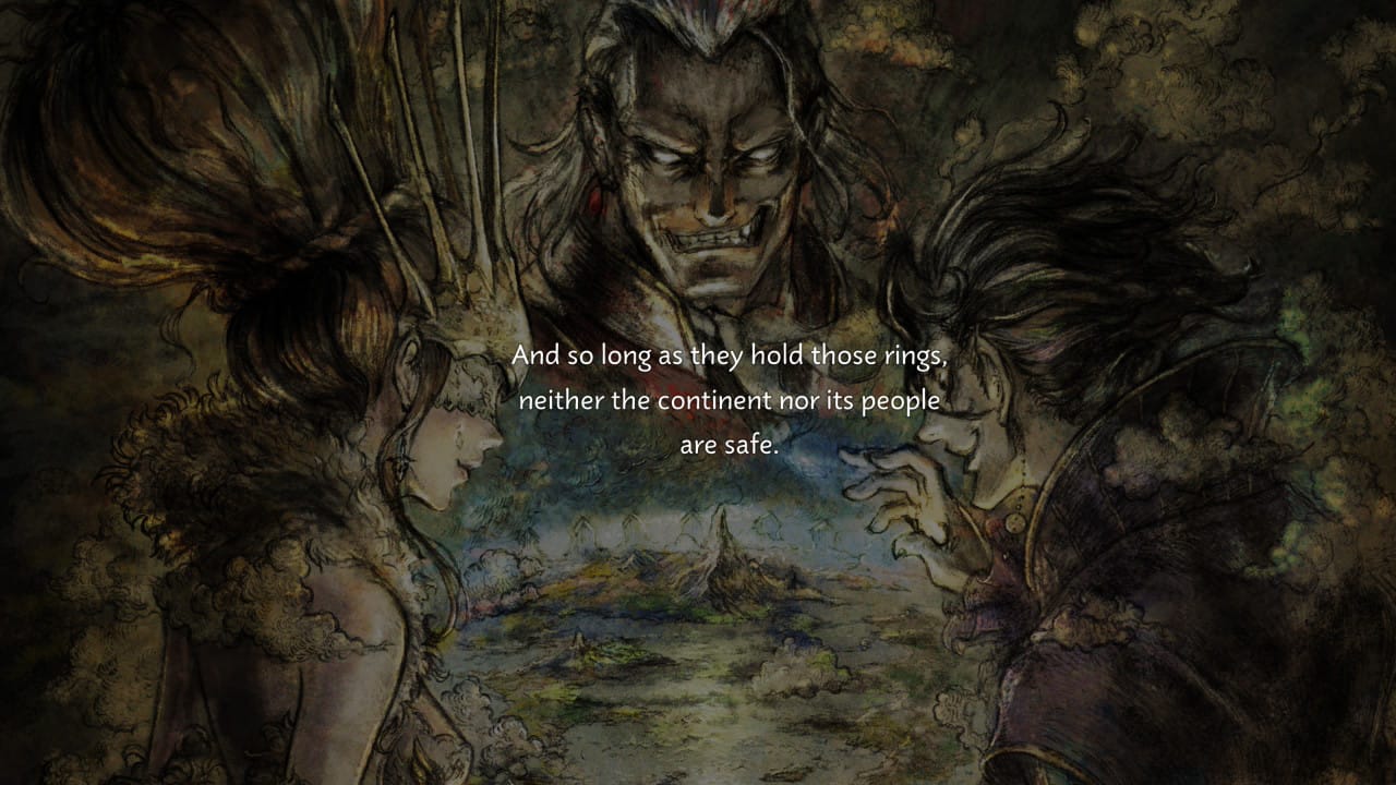 Apesar de termos apenas um único personagem principal, a progressão continua similar aos títulos antigos da franquia, onde temos diversas linhas de missões principais para realizar ao mesmo tempo, decidindo qual queremos explorar primeiro, e em que ordem fazer os próximos capítulos. Porém, desta vez, ao invés dos capítulos focarem em diferentes protagonistas, eles focam nos antagonistas, que certamente são o destaque na narrativa de Octopath Traveler 0, trazendo vilões extremamente detestáveis, porém, que ainda são divertidos de acompanhar, e mostrando muito bem o efeito que eles estão causando para a população e indivíduos locais, sempre aumentando nossa ânsia de finalmente podermos trazê-los à derrota.