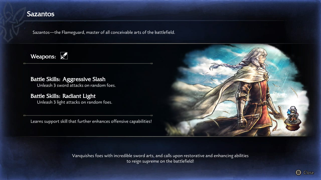 Outra grande mudança de jogos passados, e um resquício da natureza gacha de CotC, é que desta vez os personagens são bem menos customizáveis. Desta vez não temos personagens podendo aderir a duas classes simultaneamente, sendo designados apenas aos seus jobs iniciais e sua seleção de skills pré-determinadas.