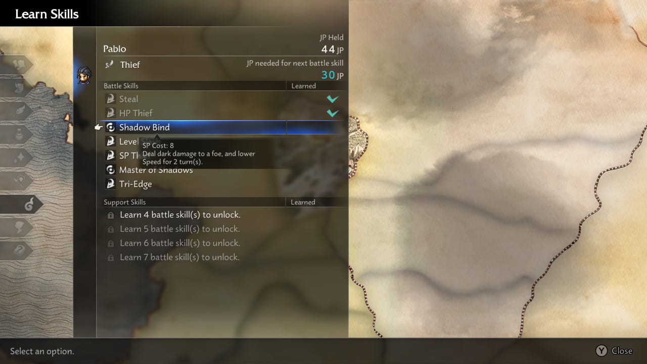 Octopath Traveler 0 continua com a natureza aberta dos jogos anteriores. Podemos ir a qualquer canto do mapa a qualquer momento —desde que não sejam calabouços relacionados à alguma história futura—, embora ainda haja rotas de níveis bem mais altos que o nosso tentando nos impedir.