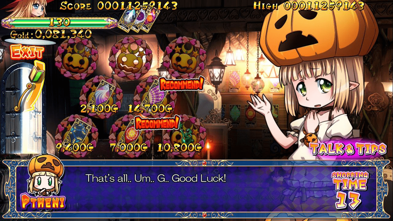 Essas moedas podem ser usadas para adquirir uma série de facilitadores durante a fase. Seja para aumentar o número de vidas, aumentar a quantidade de mana, o que condiciona o tempo de uso da barreira mágica ou dos cards contendo variações mágicas. A vendedora flutua em certos trechos da fase na sua loja abóbora voadora, não perca-a de vista!