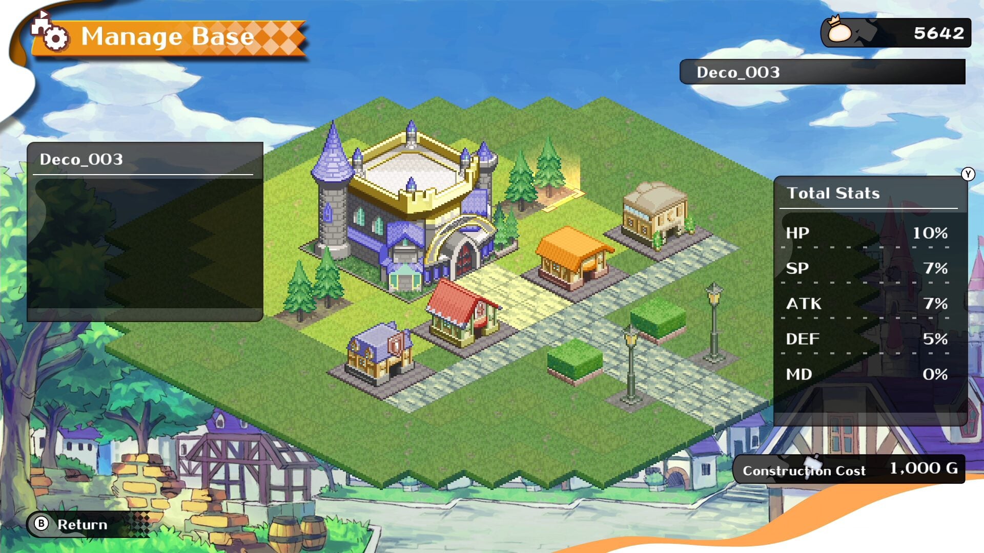 - Construção: Essencialmente o loop maior do jogo, após missões e explorações bem-sucedidas, o jogador retorna com recursos e dinheiro, nos quais ele pode gastar na melhoria do reino em que o jogo se passa. Note que melhorias, ainda que pequenas, resultam em aprimoramento de stats dos personagens, por isso é aconselhado dar atenção a isso – é um sistema similar ao da franquia ActRaiser da Square Enix.