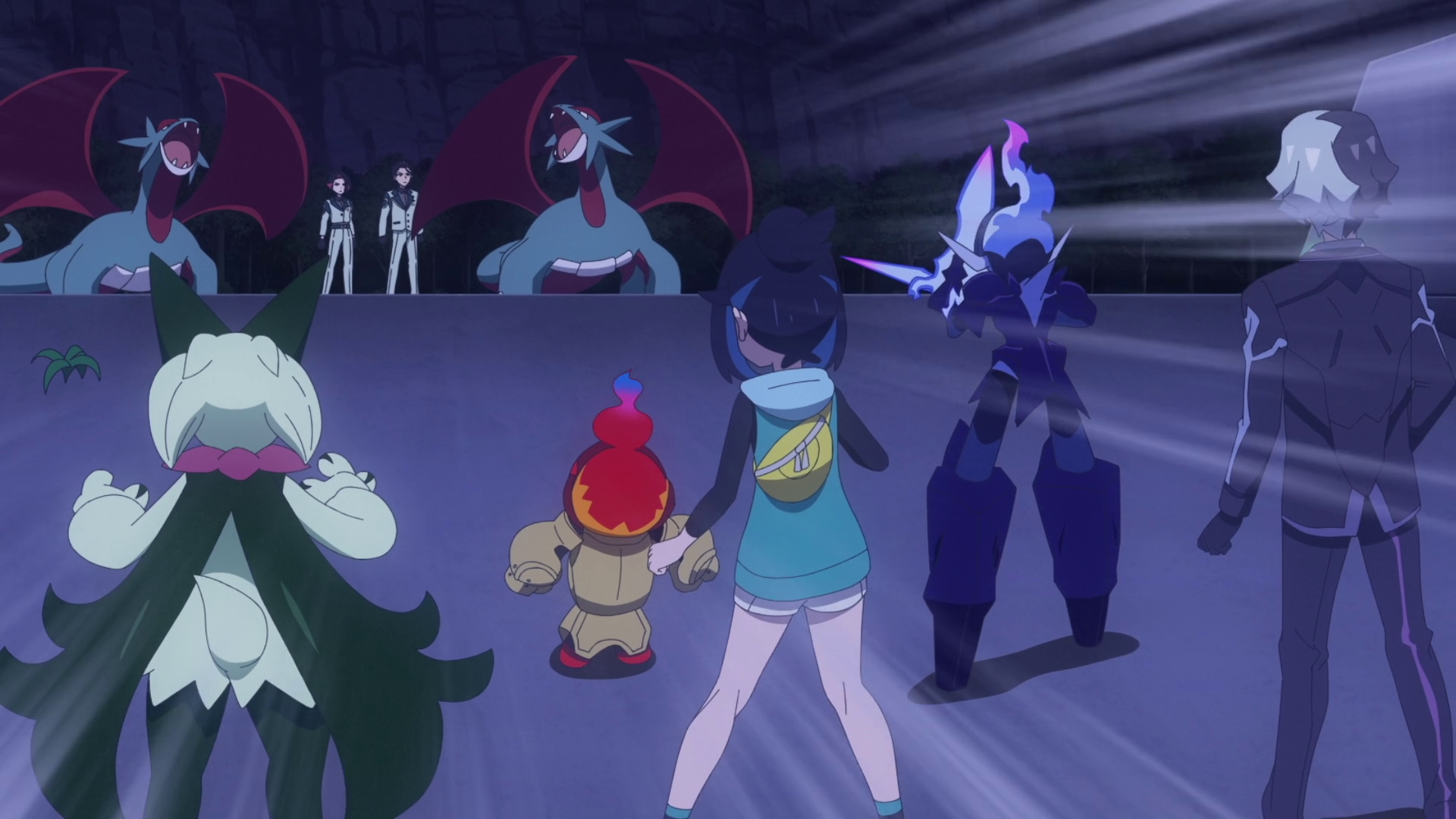 Amethio junto de Conia e Gilles atacam pela porta da frente para prover distração, enquanto isso Roy, Uruto e Cap atacam de outra entrada para prover… mais distração? Hm… Liko e Dot aproveitam a chance para tentar acessar o subterrâneo pelo elevador de carga nos fundos e são logo abordadas por Indi e Rubella dessa vez equipados com ferozes Salamence e é hora da batalha! Tá bom mas se só tinha uma entrada que eles podiam passar pra que serviram duas distrações?