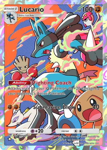 O bom e velho Lucario que pode aumentar o teto de dano dos Pokémon lutador se faz necessário para que Hitmontop possa pressionar ainda mais com dano dobrado, mas também ajuda Mega Lopunny ex passar por Pokémon com PS de até 110 caso acerte apenas uma moeda ao atacar. Honestamente eu estava bastante relutate em usar Lucario e Hitmontop como parcerios de Mega Lopunny ex, congitando em vez disso usar Rampardos na composição. O problema é que, o fóssil não é tão agil e depende muito mais de grindar o Doce Raro e o dinossauro para evoluir, o que prejudica o pacing da partida, portanto, acredito que ter Pokémon que possa bater imediantamente é a estratégia mais adequada para acompnhar a coelhinha.