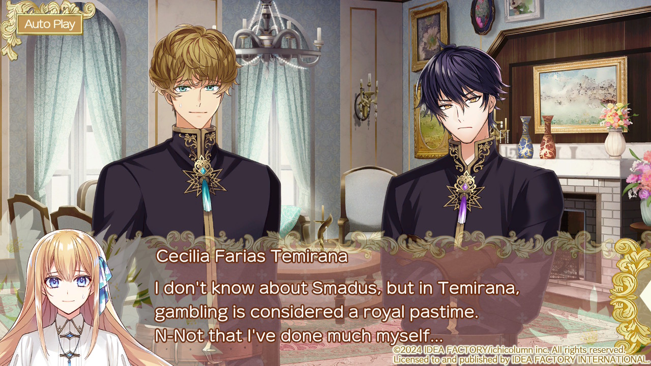 Temirana é um jogo que se apoia muito em história fictícia e construção de mundo, o que já é algo que me deixa com um certo pé atrás em relação a esse tipo de história. Foram raros os otomes que realmente conseguiram fazer com que eu me importasse verdadeiramente com as intrigas políticas e as histórias passadas que ajudaram a moldar o mundo como ele é no presente, e Temirana realmente não é um desses casos.