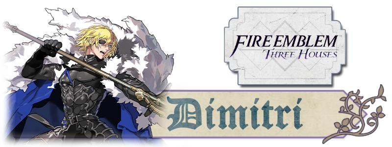 Um dos três “lordes principais” do jogo e protagonista ao escolher a classe dos Blue Lions, Dimitri é o príncipe herdeiro de Faerghus, um reino frígido ao norte de Fodlán. Sua infância traumática, somada ao seu tempo na academia com experiências nada agradáveis, tornam Dimitri um adulto rancoroso, e que apenas tem a vingança como objetivo; seu design no timeskip é indicativo disso, com ele tendo perdido o olho direito.