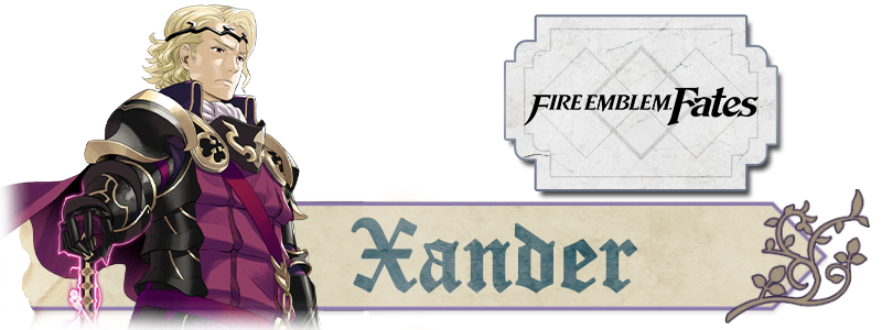 Brincadeiras à parte, Xander é o “lorde principal” de Fire Emblem Fates: Conquest, e o príncipe herdeiro do reino de Nohr, ele é o responsável por supervisionar a estadia de Corrin no reino, Xander, como o conhecemos, é alguém sério e um tanto quanto teimoso. Sua prioridade com a sua família é notável, porém o deixa cego para eventos importantes que estão acontecendo ao seu redor.