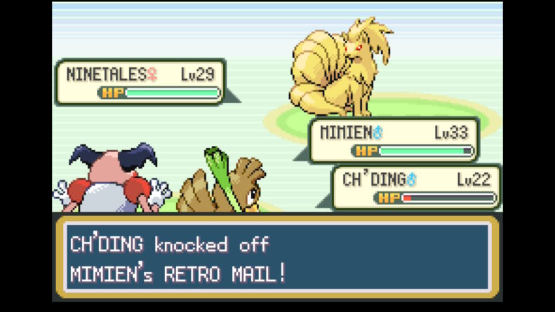 - Equipe um Retro Mail no Mr.Mime. Na hora de escrever uma mensagem no Mail, escreva o que quiser. A melhor e mais fácil é Pokémon > Abra