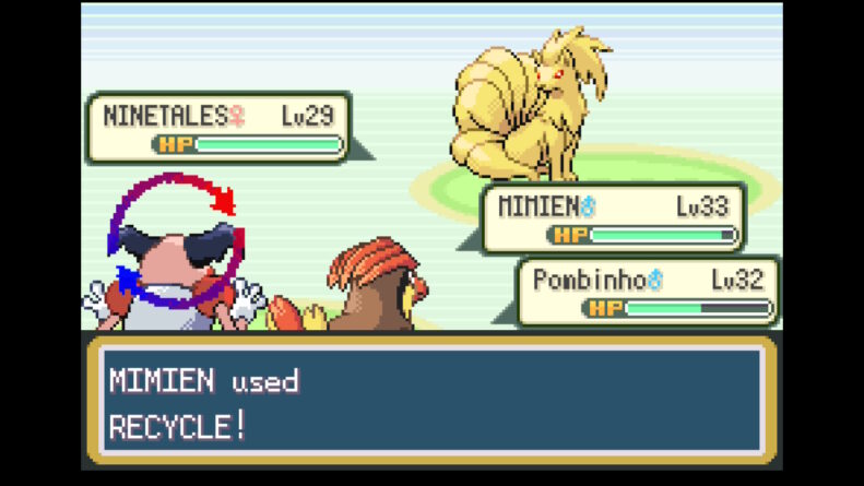 - Apenas dois Pokémon aprendem Recycle no jogo todo: Mr.Mime (Lv33) e Porygon (Lv44)