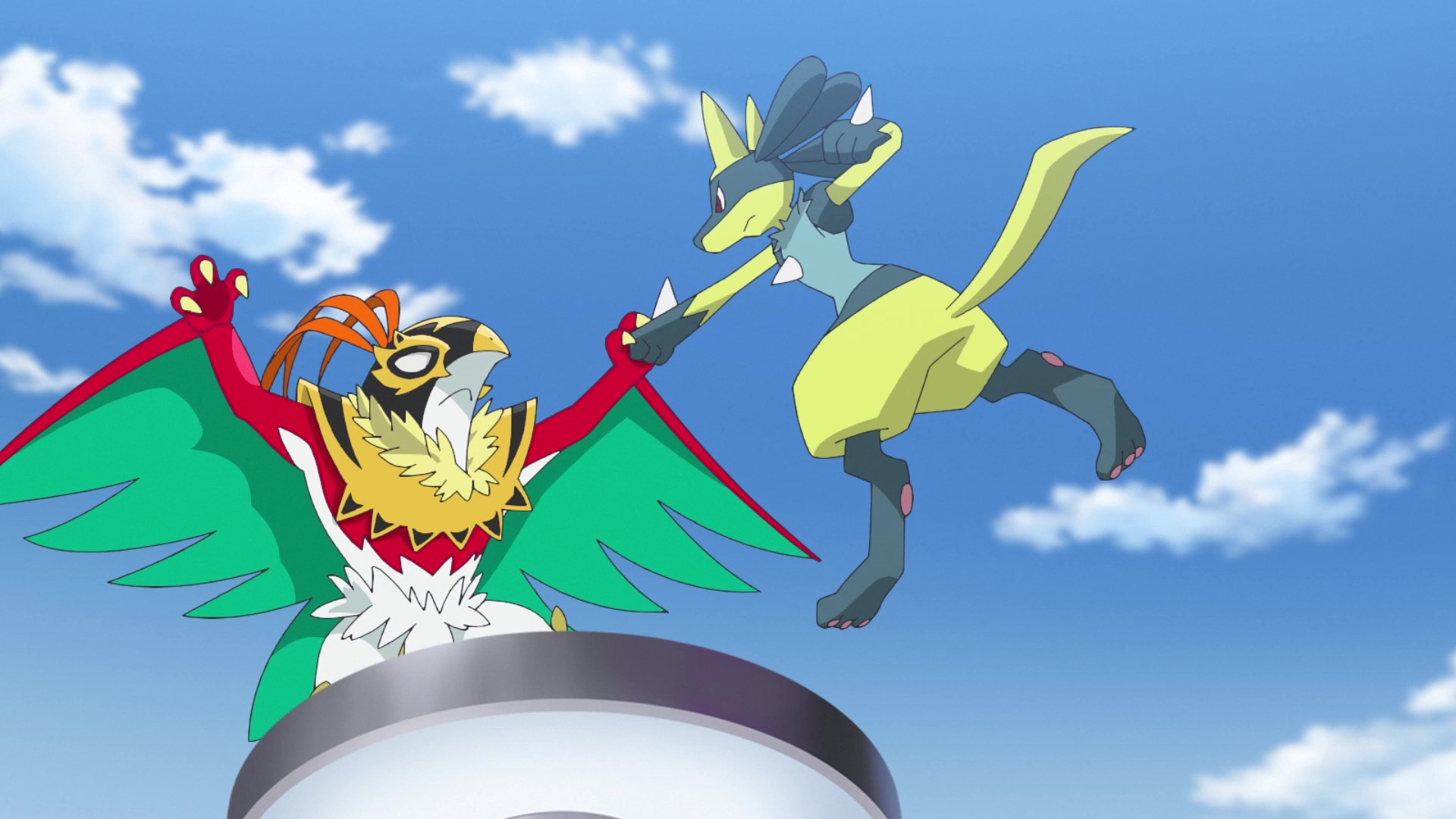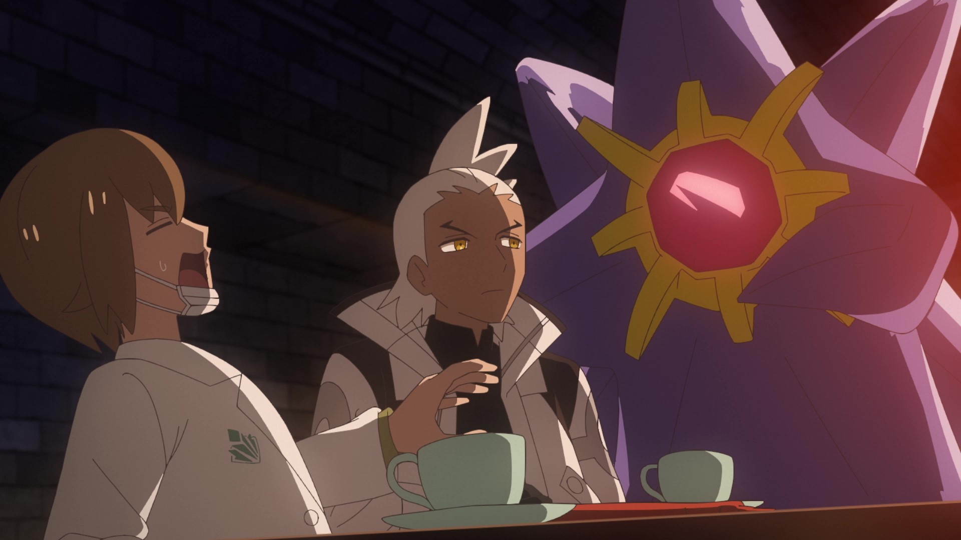 Bom, no caminho, o Mega Starmie chama atenção do Mestre Mayonese, que logo fica amigo de Friede, e claro, que coincidência, também é amigo de Roy e Uruto, e seguem juntos pro esconderijo. Ele trouxe algo bacana: Mega Lucarionite Z. Então legal, teremos Mega Lucario Z em breve (não, não foi hoje).
