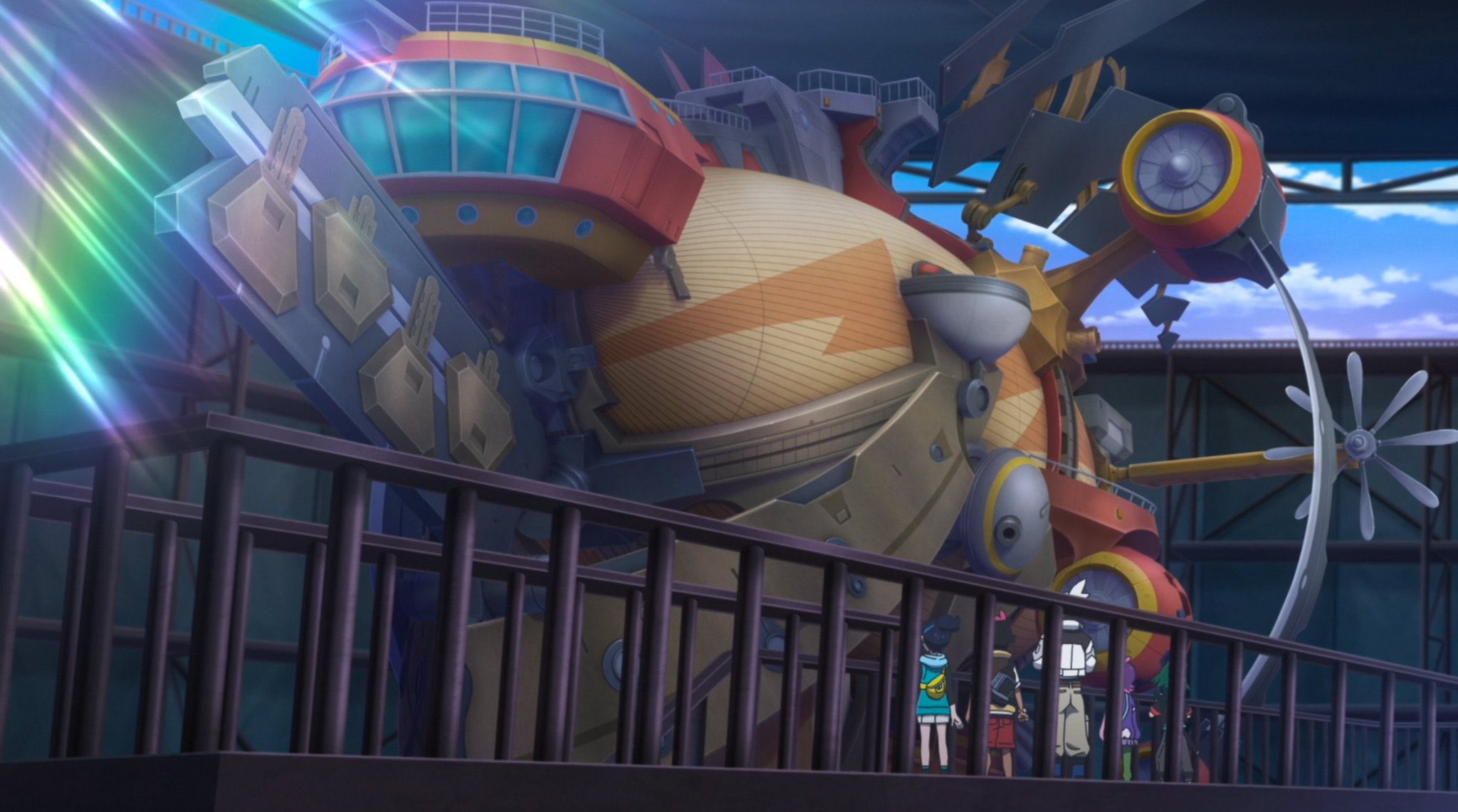 Pra fechar o episódio, a reforma no barco finaliza, e o grande Brave Asagi pode novamente subir aos céus (a caminho da Diana), com muito mais estilo e poder de propulsão! Ficou um pouco mais maneiro sim, não vou negar. Mas confesso que sou um fã da criatividade do designs do barco que voa.