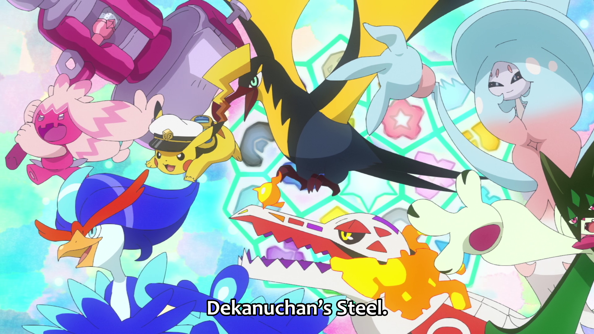 Curioso que nenhum dos Trovonautas além desses 3 foram inclusos. Uruto como um fã de Pokémon que só joga o jogo mais atual já afirmou que só quer saber de Megaevoluir seus parceiros. O que nos dá 17 tipos, mas faltando apenas um. Os Trovonautas lembram da Diana com um Pecharunt que tem uma razoável chance de ser o Tera Venenoso, e vocês achando que era só um episódio mais cômico pra aliviar a tensão.