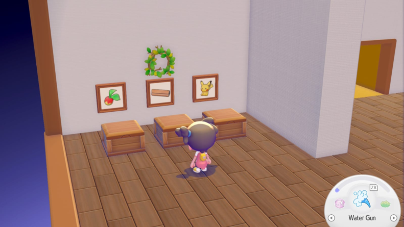 E para isso, aqui vai uma dica que aprendi com a galera do Minecraft anos atrás, e que curiosamente, também é possível replicar aqui em Pokopia. No jogo, é bem fácil conseguir quadros vazios, e nesses quadros é possível colocar qualquer item. A primeira instância isso pode não parecer muito útil atém dos fins decorativos, mas cada quadro pode ser usado para sinalizar itens presentes em cada baú, facilitando um pouco a organização de itens fora do inventário.