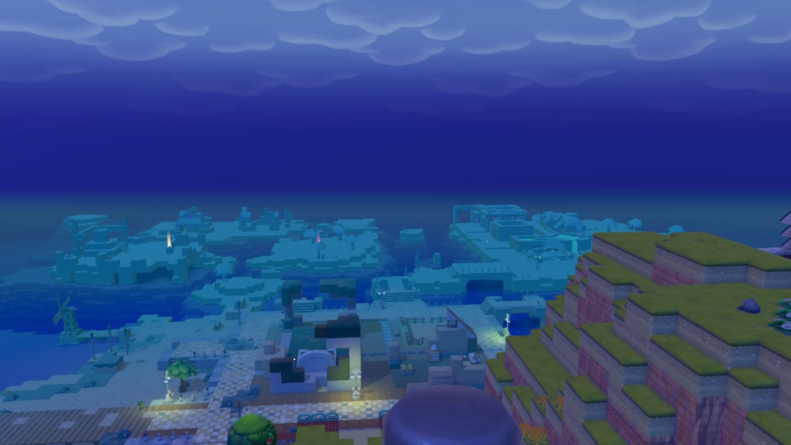 Nesse sentido, o jogo se sai muito bem também, Pokopia possui um level design feito a mão muito bem estruturado, diferente de como é em outros jogos sandbox como Minecraft e até mesmo o primeiro Dragon Quest Builders, onde os mapas são gerados proceduralmente, com elementos x ou y espalhados pela aleatoriedade do mundo gerado. Essa abordagem dá brecha para trabalhar em cima do mundo com muito mais intenção, onde pontos de interesse são bem localizados, guiando o jogador de maneira intuitiva de ponto A a ponto B sem parecer que está o “segurando pela mão” e também sem parecer um jogo linear.