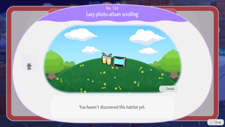 Um habitat no contexto de Pokopia é algo menor do que se imagina, limitando-se somente a uma pequena área em volta de uma combinação de elementos específicos, sejam eles naturais ou não. Por exemplo, Pidgey aparece em um campo de contendo no mínimo quatro flores. Assim que o mesmo se instalar naquela região, essa área se tornará sua casa e outros Pokémon serão impossibilitados de aparecer nesse mesmo campo.