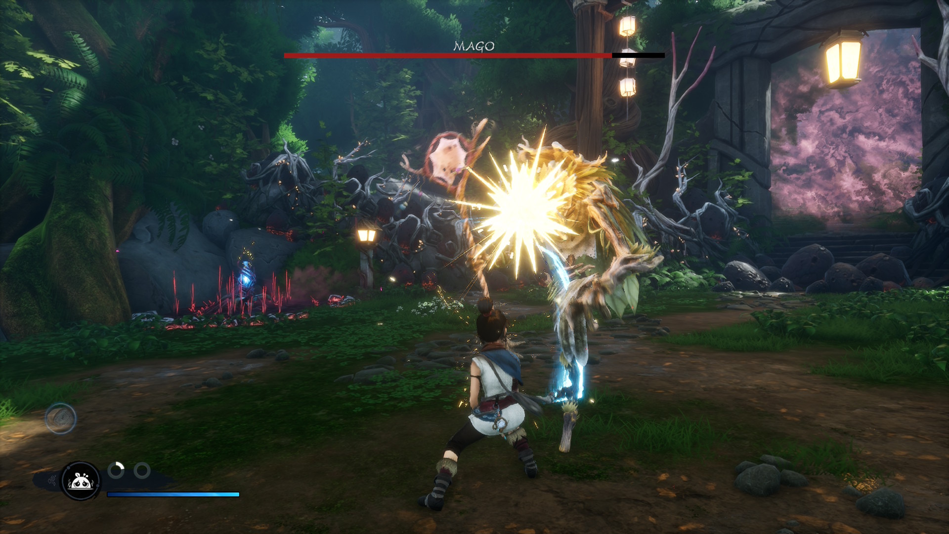 O jogo é fortemente inspirado pela cultura asiática, na estética, na arquitetura e nas referências religiosas. É tudo bem bonito e de certa forma traz um pouco daquele visual típico de alguns filmes dirigidos por Hayao Miyazaki, ainda mais considerando que é uma jovem protagonista em uma floresta mística.