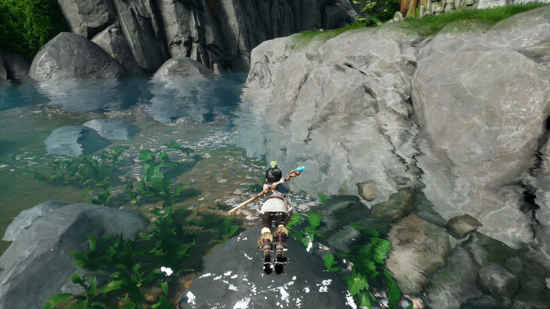 É direto, mas é simplesmente divertido. Confesso que depois do último game que joguei por aqui, que foi Fallout 4, dar de cara com um level design tão coerente foi um alívio. Cada setor é pensado para utilizar as ferramentas de Kena, seja em combate ou em puzzles simples. Como a floresta é bonita, é gratificante ficar caminhando com a personagem e interagindo com o cenário.