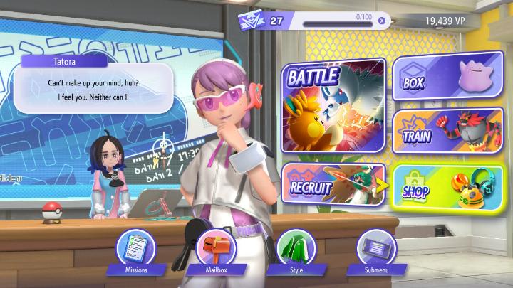 O jogador também pode construir builds para seus Pokémon, pegar novos companheiros em um gacha, transferir bichinhos do Home e personalizar sua experiência, da música que vai escutar a quais poses seu avatar deve fazer antes da batalha.