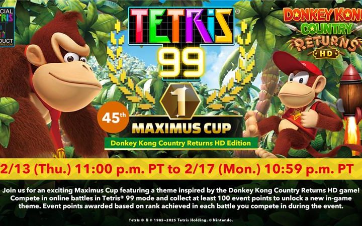Tetris 99 | 45th MAXIMUS CUP, com o tema Donkey Kong Country Returns HD, está agendado para o dia 13 de fevereiro Nintendo Switch Online Tetris 99 | 45th MAXIMUS CUP, com o tema Donkey Kong Country Returns HD, está agendado para o dia 13 de fevereiro Marcos Vinícius 06/02/2025